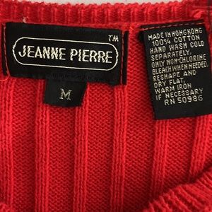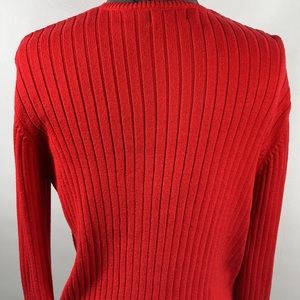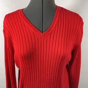 Jeanne Pierre V Neck 100% Cotton Long Sleeve Red Sweater Size M