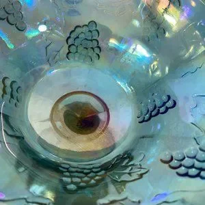 Vintage Indiana Glass Iridescent Blue Harvest Grapes 1960's carnival glass dish