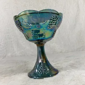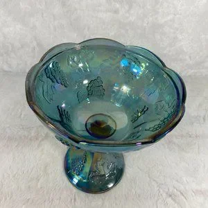 Indiana Harvest Grape Style Blue Carnival Glass Compote Candy Dish Bowl 1247B