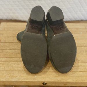 A pair of beautiful black nubuck leather ankle booties with a rear zip by Marsèll. Super cute and in really good pre-owned condition! The nubuck leather is very soft, probably some of the softest nubuck I've encountered. There is some discoloration on the round toes, but it's to be expected with wear on this type of leather. The color of the leather has a slight blue hue to it, although it is definitely a black shoe, just not as saturated as a smooth black leather.