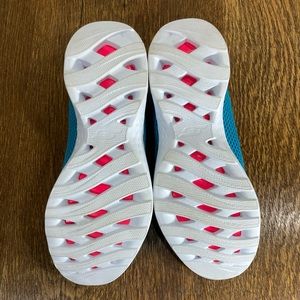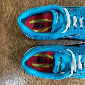 Skechers Go Train Lace Up Sneaker. Women’s Size 8.5. Turquoise. See last couple of close up pics for truer color. Great condition. Gently worn. No rips or holes. Smoke free. Great tread with very minimal wear. No box.