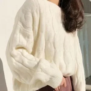 Cable-knit Pullover Sweater | Oversized Top Blouse School Office Fall/Winter