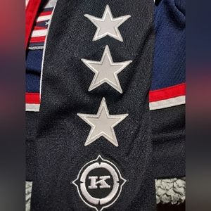 son outgrew this yrs ago. missing string. time for someone new to enjoy. good quality. sewn patches and other items. hardly worn.