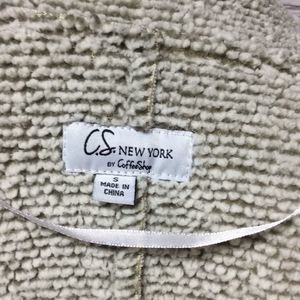Rugged but classy gray Sherpa type open front vest with hints of the palest green. Size small C.S. New York Design. Has been gently loved and worn.