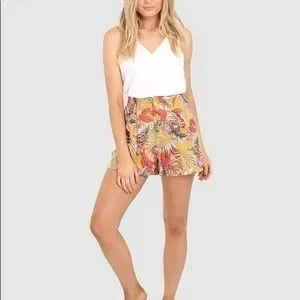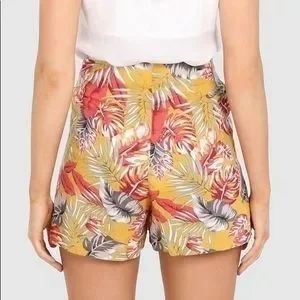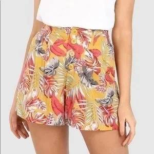 Womans Spring Yellow Orange Beachy Floral Summer Lightweight Shorts