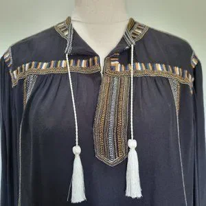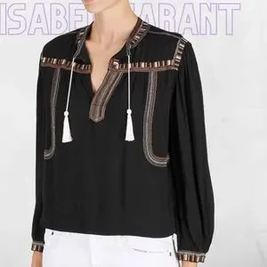Isabel Marant Etoile Cabella Black Embroidered Peasant Blouse Size 36