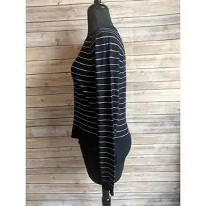 Ann Taylor Loft Navy Blue and White Striped Sweater long sleeve. sweater style is 2 inches longer in back than front.