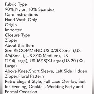 MISSMAY Women's Vintage Floral Lace Short Sleeve Boat Neck Cocktail. Fabric description is listed in the picture above!