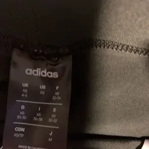 Adidas athletic pants. Tags still on. There is a slight dust mark. It’s not noticeable hardly at all…and I’m pretty confident they can be washed right out 🖤😄 they are super soft!! And super cute! Just in time for Fall 🙌🏻