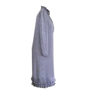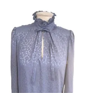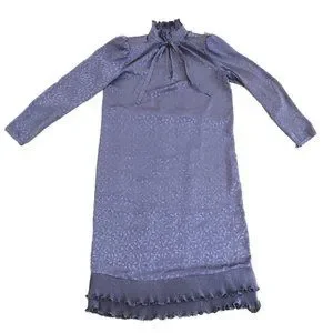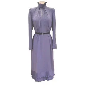 VTG 70s Iridescent Lavender Dress High Neck Ruffle Puff Sleeve Cottagecore M L