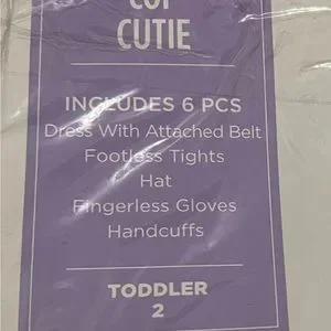 Includes 6 pieces : Dress with attached belt, Footless tights, hat, fingerless gloves, and handcuffs!!!