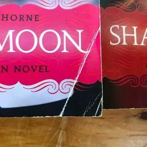 Used and in decent condition. The edges of all of the books show a good bit of wear, with the third book having some creases on the cover and a stain on the front.