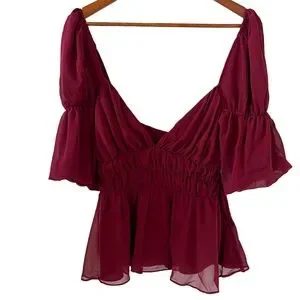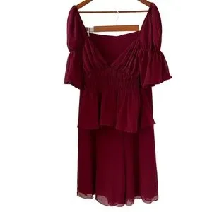Fame and Partners NEW Smocked Peplum Blouse & Wide Leg Culotte Pants Size 2