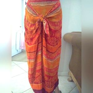 BNWOT 100% ADRIENNE VITTADINI ORANGE/ RED WRAP SKIRT SZ. 4 MAXI SEXY