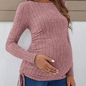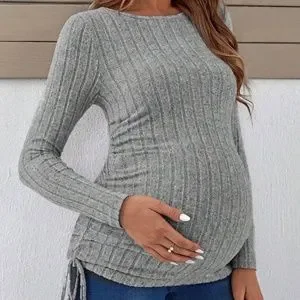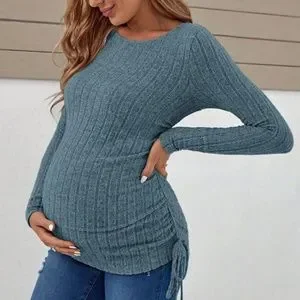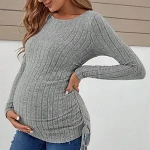 Maternity Ruched Side Ribbed Long Sleeve Top