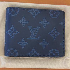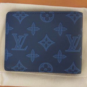 BNWT Louis Vuitton Portefeuille: Monogram Shadow Slim Multiple Bifold Wallet in Rare Navy Colorway