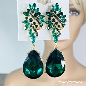 Elegant Emerald Teardrop Crystal Drop Earrings