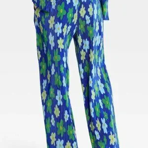 Target x Sammy B Wide Leg Pleated Trousers Pants Blue Flowers Size XL New