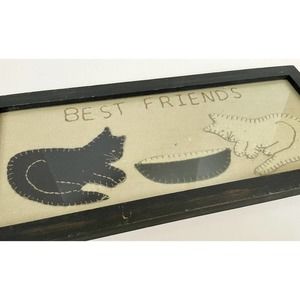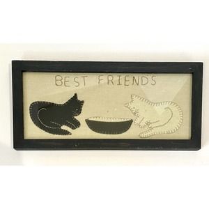 Primitive Stitched Fabric kittens "Best Friends" framed cats picture art
