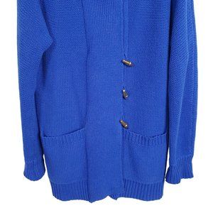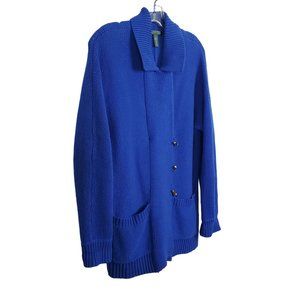 LRL Ralph Lauren Size L Cardigan Gold Toggle Pockets Royal Blue Collar Pockets