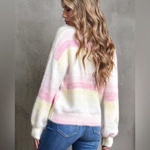 Tie Dye Color Block Mohair Sweater. Color White with Pink and Yellow.