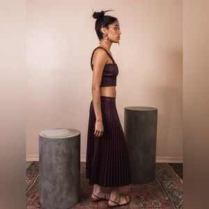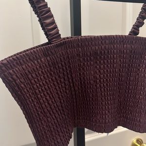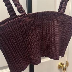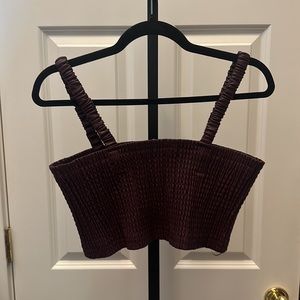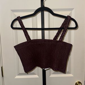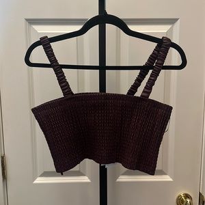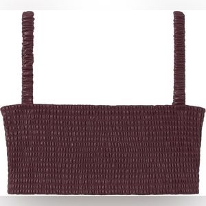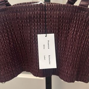 New with tags from a smoke free home. Faux-leather smocked top from Proenza Schouler White Label featuring black, faux leather, smocked panel, cropped and thin shoulder straps.