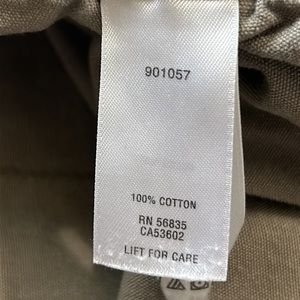Cabela’s Outdoors, Tan, Elastic Waist Shorts, Size 46. Shorts have elastic at opposite ends of the waist, zip, fly, and button closure. They have 4 pockets in the front, 2 pockets in the back. Measures 22 inches across the unstretched waist, 5 inch inseam. In very good condition.