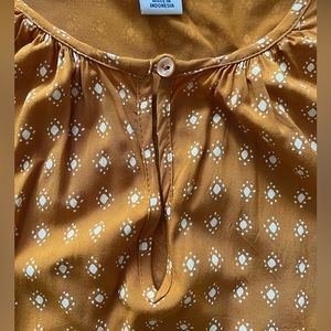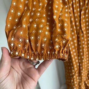 Gorgeous fall old navy dress! All over pattern, subtle ruffle at the bottom, cinched waist and sleeves, and small button and loop closure that can be closed at the neck. Adorable with booties!