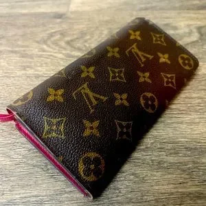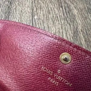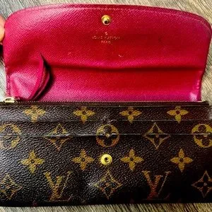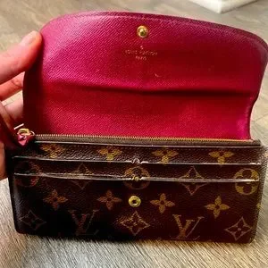 LOUIS VUITTON MONOGRAM WOMEN’S WALLET. Brown leather, poppy red lining. Authentic, lightly used, great condition.