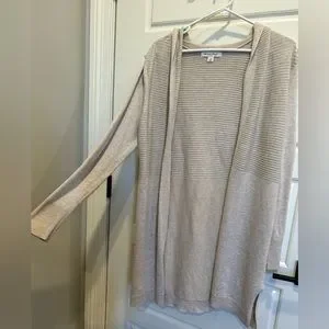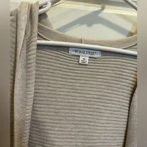 99 Jane St Hooded Open Cardigan with Split Hem & Ribbing Size Medium. Heathered oatmeal color. Lightweight, great for layering. Smoke free home