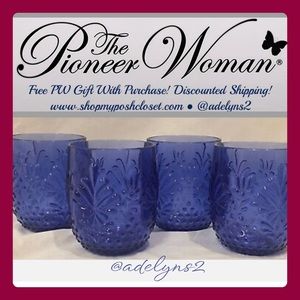 🌺 NWT The Pioneer Woman 14-Ounce Sunny Days Tritan Stemless Wine Glass, Cobalt Blue, Set of 4
