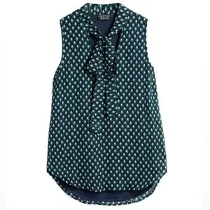 Papermoon navy & green duncan tie neck sleeveless blouse size small GUC