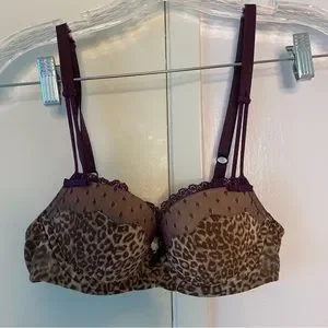 EUC Purple Cheetah Demi cup padded bra 32B by Felina Lingerie