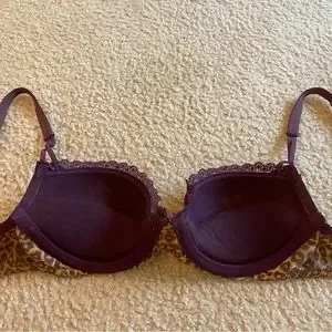 EUC Purple Cheetah Lace Demi Cup (lower) half padded Bra, 32B, worn once. Excellent condition. No issues. By Felina Lingerie