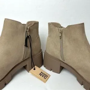 Madden NYC Lug Sole Chelsea Bootie in Sand. Brand new with tags. Inside zipper closure for easy slip on and off. Tan Sand color. Block heel. Round toe. Ankle height. No box.