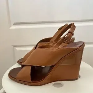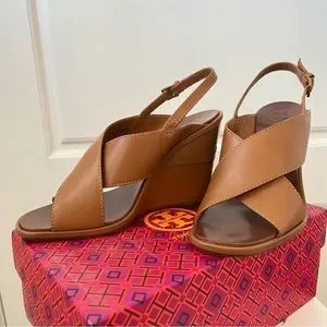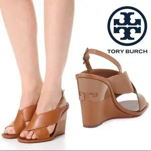 Tory Burch Gabrielle Crisscross Wedge Leather Sandal.