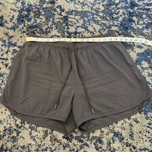 Picturing these athletic shorts by Ideology in gray with built in panty liner and a drawstring adjustable waist.