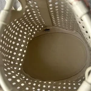 The playful Fifi is a functional masterpiece. This small backpack has a leather cord strap that creates two shoulder straps and acts as a drawstring closure. This unlined lattice leather bag features our signature logo at the front.