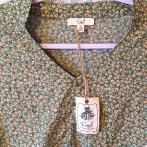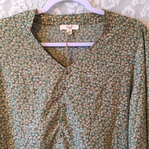 NWT Green and Pink Floral Dress. Size Large. The Pictures Do Not Do It Justice! Peasant Like Sleeves With Buttons Down The Front. Slightly Longer in the Back.