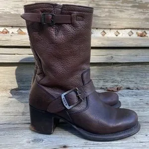 Frye Vera Short Brown Leather Heeled Boot Women’s Size 5.5