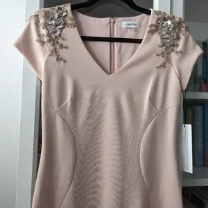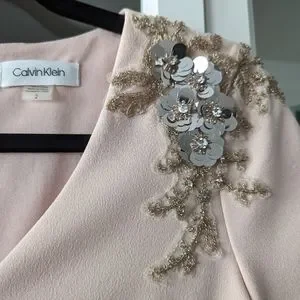 BWT Calvin Klein dress in blush pink with gorgeous floral beading and sequin embellishments on the shoulders!