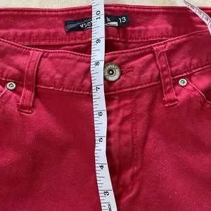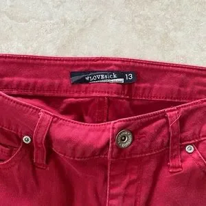 LOVESICK- Super skinny red jeans- Juniors Size 13. FIRM Measurements in pictures. EUC. No flaws. Pockets in back and small pockets in front. Beautiful color red. Bundle with other items to save more ♥️