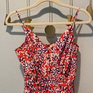 Adorable floral print dress by Yumi Kim. Size extra small. Adjustable spaghetti straps. V neck. Zipper in back. Lined. Tropical flowers. Red base with white and blue flowers. In excellent condition. Worn once. Does not come with fabric belt. Jayne Tulip dress. From Anthropologie.