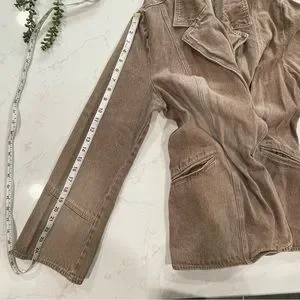 Long sleeves, pockets and a cute point on the back of the collar are some of my favorite parts of this jacket. Add it to your wardrobe today.