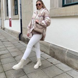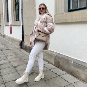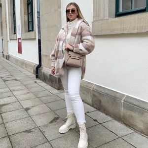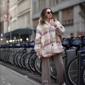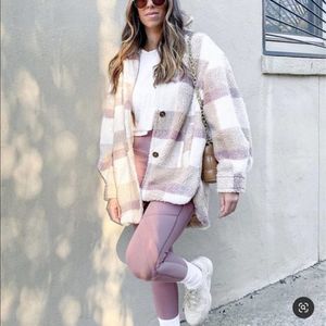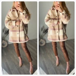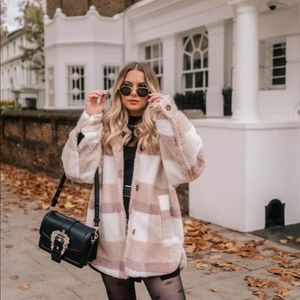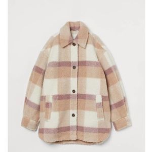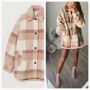 H&M Plaid Pastel Colors Faux Shearling Jacket Lined Warm