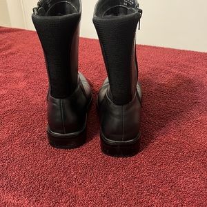 Anna Klein, black leather boots, zipper on the side, square toes