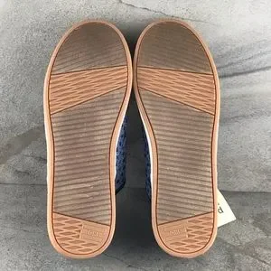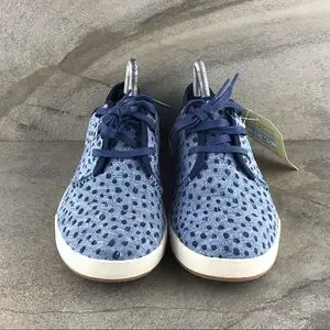 Size 10 canvas uppers in Cornflower Slub Chambray color with Torn Dots design.
