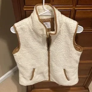 Old Navy women’s vest, size medium, ivory fur with brown detail,keeps u warm!