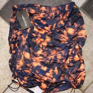Get maxing out your wardrobe with this mini skirt. Featuring a navy tie-dye material with a ruched side and toggle tie, team this with a mesh bodysuit and chunky boots for a look we're obsessing over.