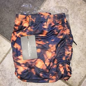 PLT Navy Tie Dye Ruched Side Toggle Mini Skirt